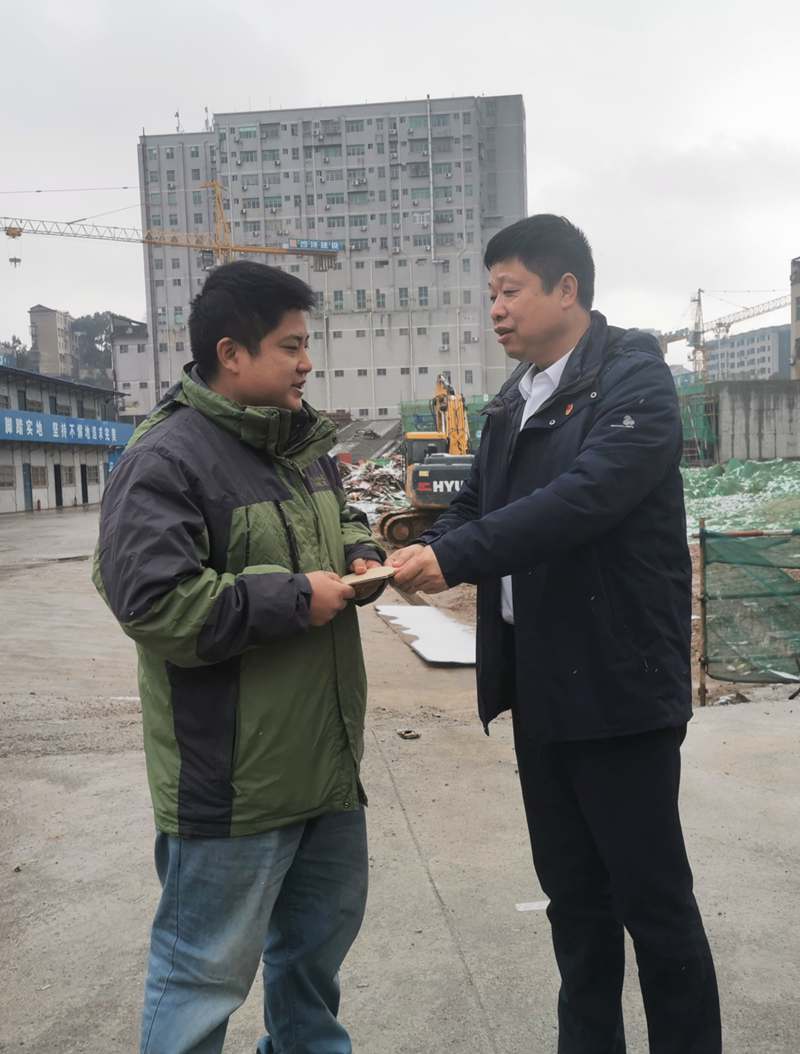 公司黨委副書記、總經(jīng)理江中同志慰問錦園路項(xiàng)目一線困難群眾,并向堅(jiān)守在項(xiàng)目建設(shè)一線的工人們提前送上新春慰問,致以衷心的感謝和美好的祝愿,感謝大家為項(xiàng)目建設(shè)付出的巨大努力。江中強(qiáng)調(diào),項(xiàng)目負(fù)責(zé)人要做好各項(xiàng)服務(wù)保障工作,確保大家過(guò)一個(gè)歡樂祥和的春節(jié)。
