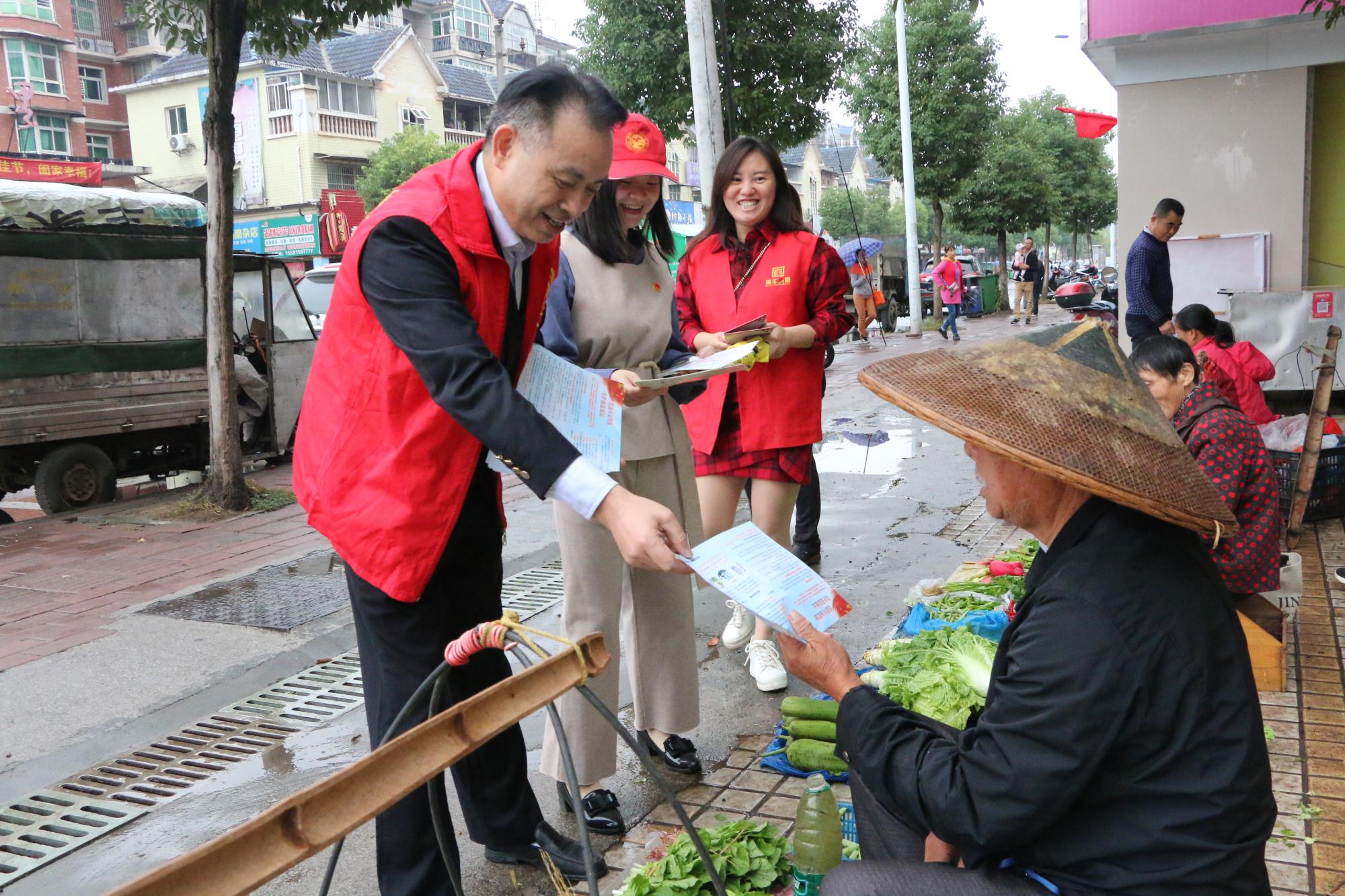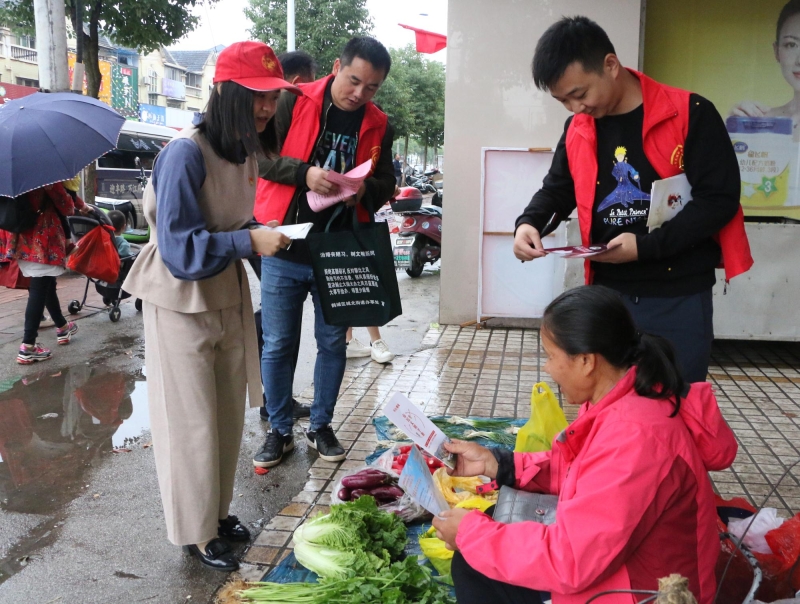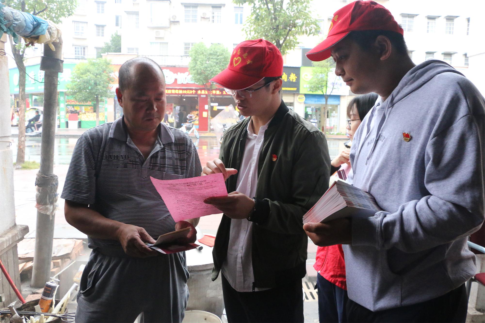上午九點,雖漫天細雨,志愿者的熱情卻不減。活動負責人跟大家交代好注意事項后,志愿者們分隊前往社區(qū)挨家挨戶發(fā)放綜治民意調(diào)查、“三城同創(chuàng)”、掃黑除惡、禁毒等各類宣傳手冊,耐心給群眾講解宣傳冊內(nèi)容,讓市民了解并積極參與幸福社區(qū)的創(chuàng)建工作。