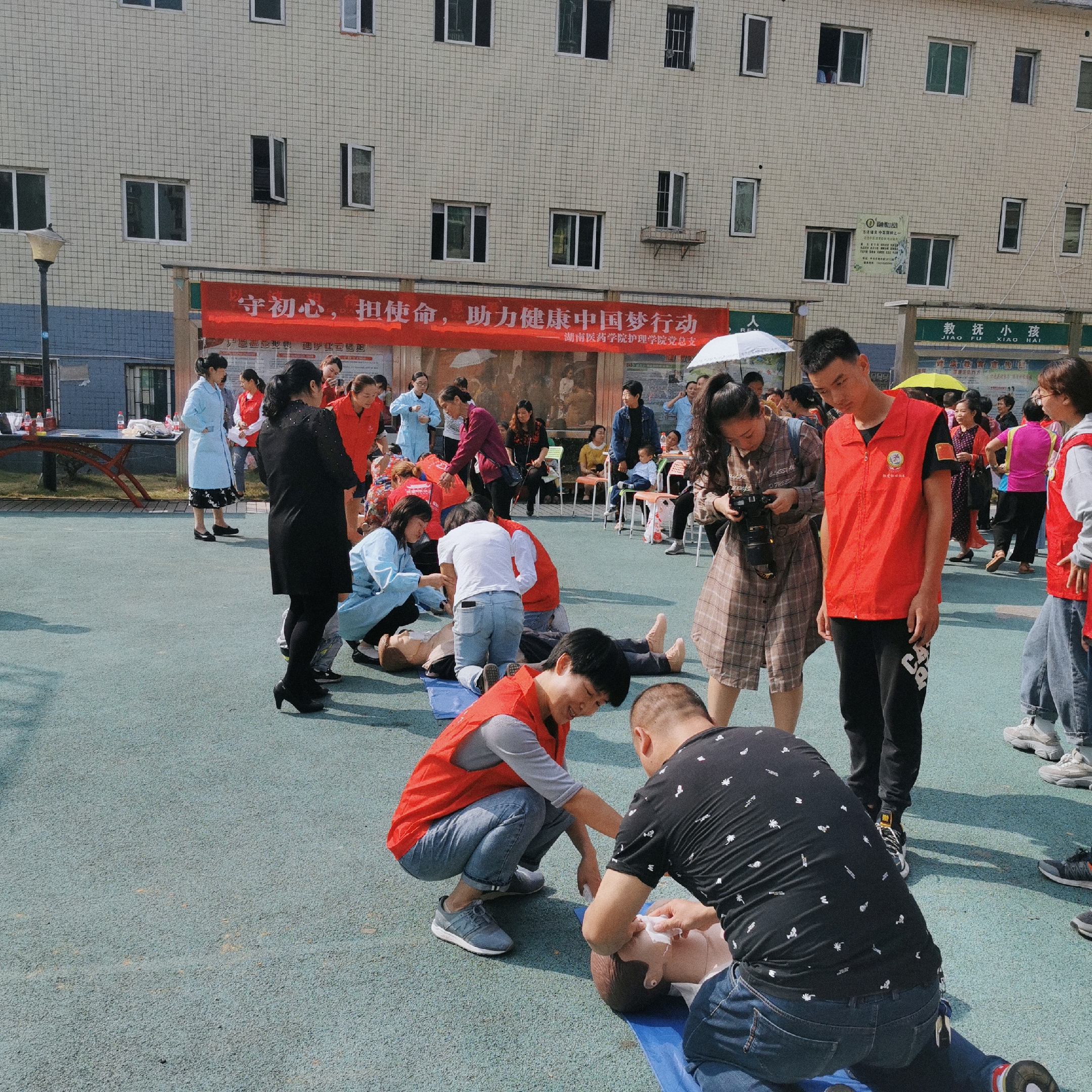 市城建投第二黨支部黨員在黨委委員、副總經(jīng)理李堅(jiān)同志的帶領(lǐng)下,結(jié)合開展“不忘初心、牢記使命”主題教育,從“學(xué)懂弄通”和“踐行擔(dān)當(dāng)”初心使命兩方面,與醫(yī)學(xué)人員、社區(qū)群眾交流學(xué)習(xí)體會(huì)。湖南醫(yī)藥學(xué)院護(hù)理學(xué)院結(jié)合生活實(shí)際,為參加活動(dòng)的黨員、社區(qū)群眾講授“心肺復(fù)蘇”急救知識(shí)、海姆立克急救法,并對(duì)黨員、社區(qū)群眾進(jìn)行現(xiàn)場(chǎng)技能操作培訓(xùn),用實(shí)際行動(dòng)踐行急救為民的初心使命,受到社區(qū)群眾的普遍歡迎。