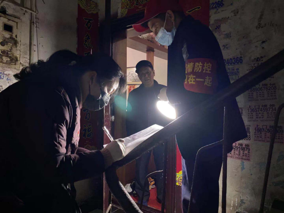 2月4日晚,板橋鋪社區(qū)黨員突擊隊再次去無人管理小區(qū)對白天不在家住戶進(jìn)行排查。