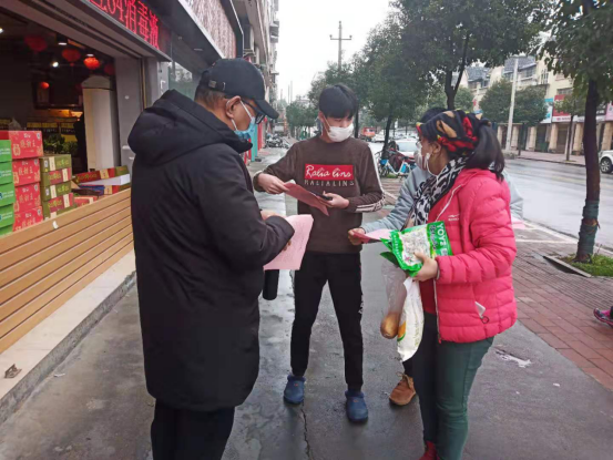 2月3日,突擊隊員在瑞豐路社區(qū)發(fā)放防疫宣傳單