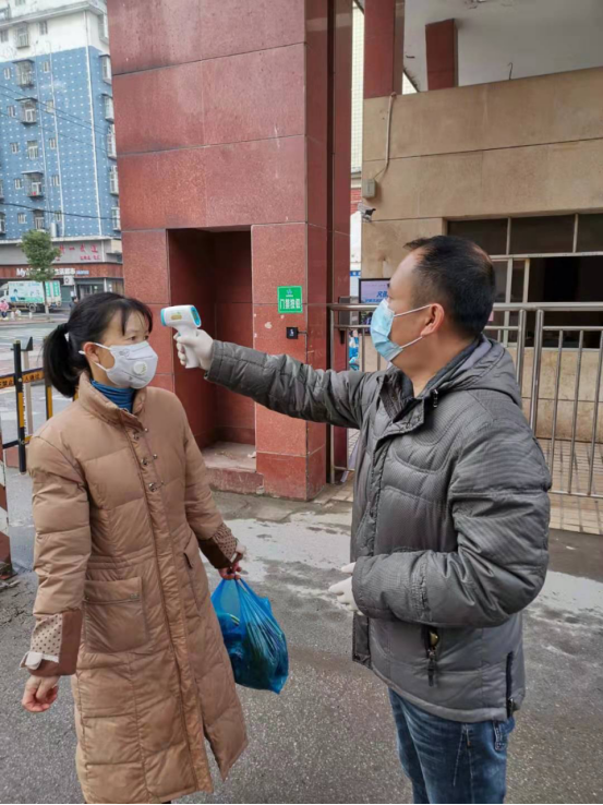 2月4日,突擊隊員為小區(qū)進(jìn)出人員檢查體溫