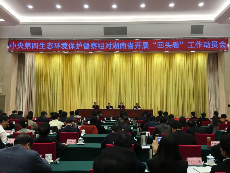 為深入貫徹落實(shí)習(xí)近平生態(tài)文明思想,經(jīng)黨中央、國(guó)務(wù)院批準(zhǔn),中央第四生態(tài)環(huán)境保護(hù)督察組近日進(jìn)駐湖南省開(kāi)展環(huán)境保護(hù)督察“回頭看”。10月30日,中央第四生態(tài)環(huán)境保護(hù)督察組對(duì)湖南省開(kāi)展“回頭看”工作動(dòng)員會(huì)在長(zhǎng)沙召開(kāi),督察組組長(zhǎng)李家祥、副組長(zhǎng)趙英民就做好督察“回頭看”工作分別作了講話,湖南省委書(shū)記杜家毫作了動(dòng)員講話,會(huì)議由湖南省省長(zhǎng)許達(dá)哲主持。
