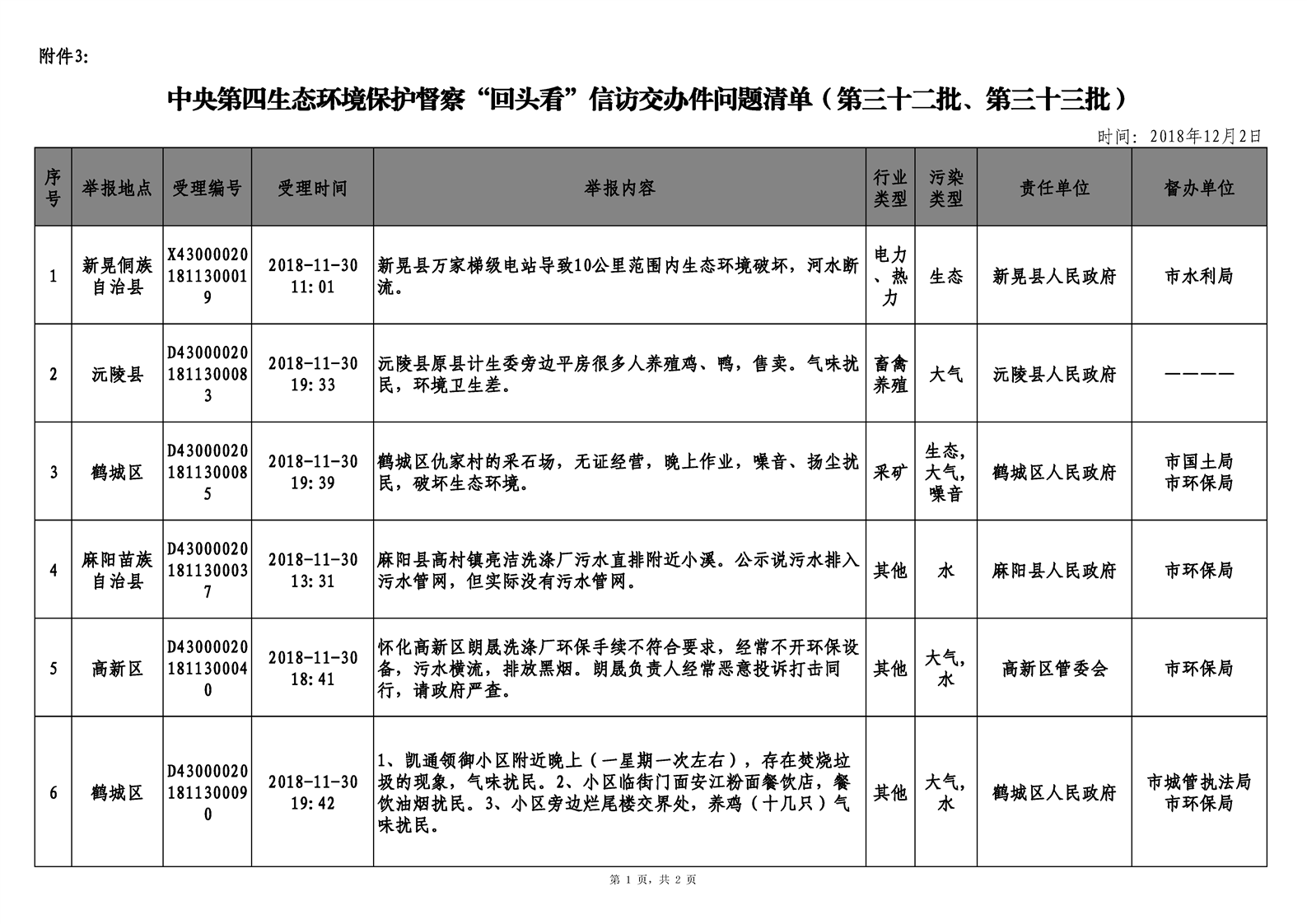 第三十二期 懷化市配合中央生態(tài)環(huán)境督察回頭看工作專報