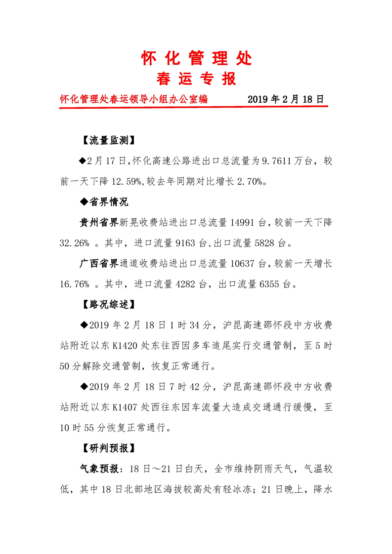 2019年懷化市高速公路春運(yùn)專報(bào)(第27期)