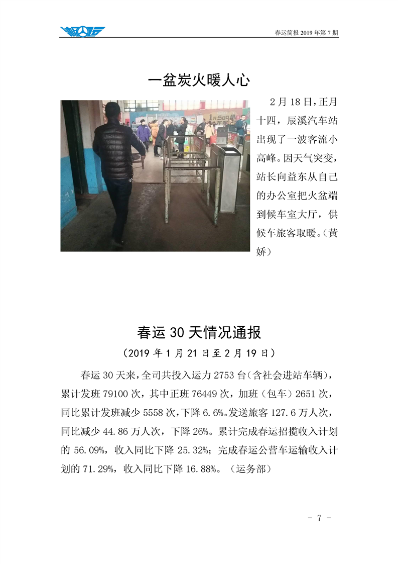 2019年湖南懷化公路運輸集團有限責任公司春運簡報(第七期)