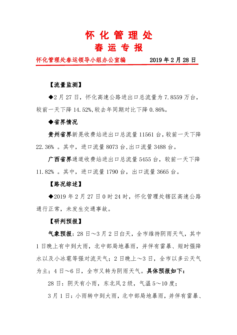 2019年懷化市高速公路春運(yùn)專報(bào)(第37期)