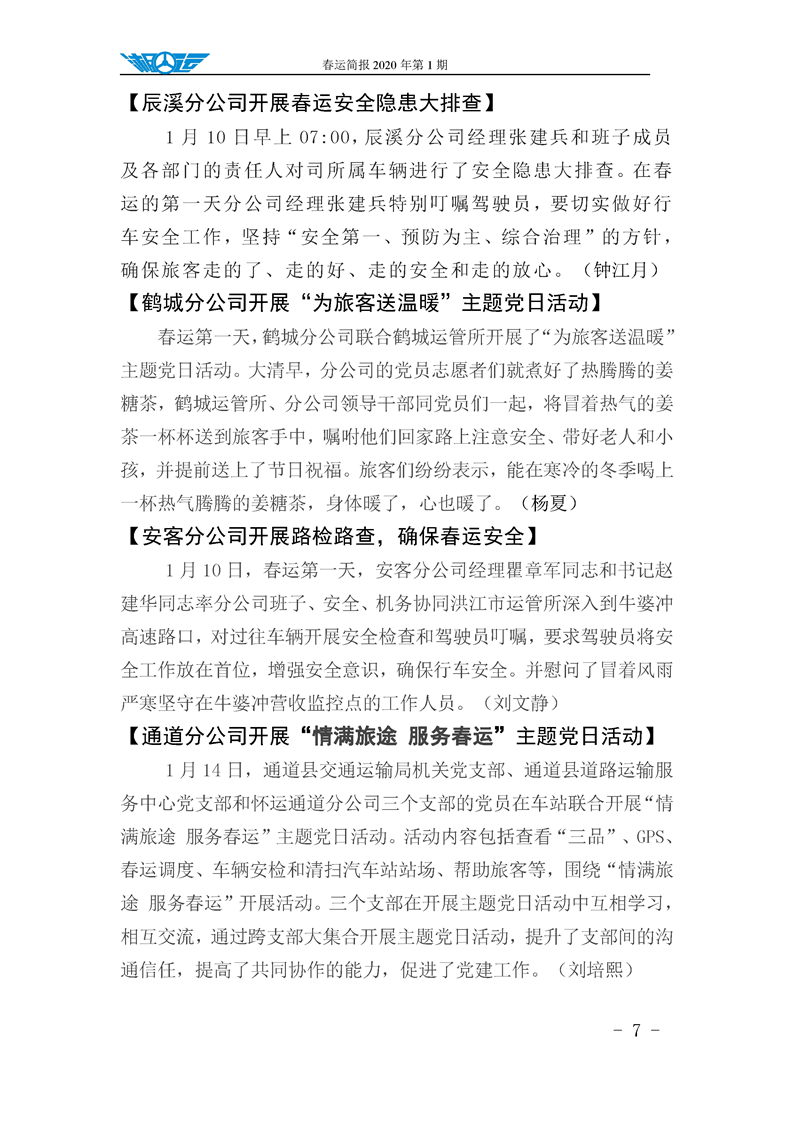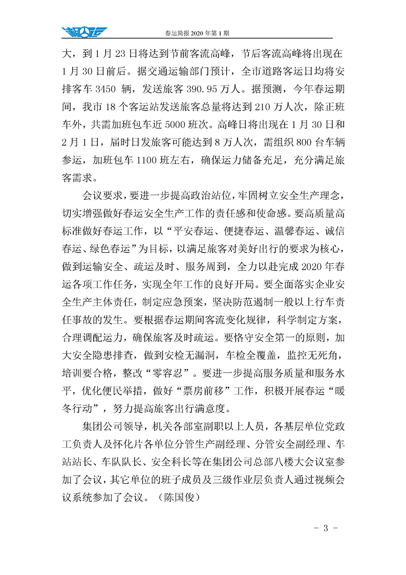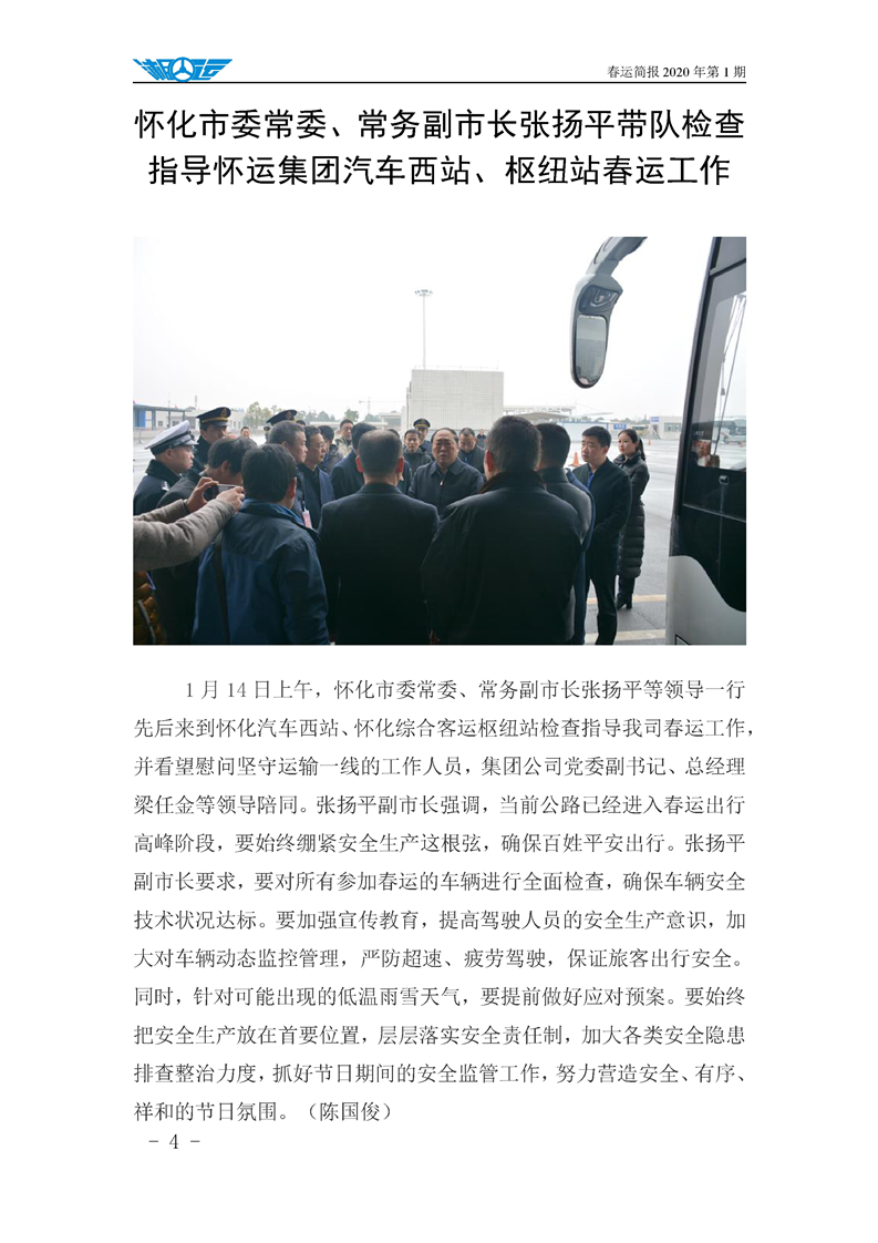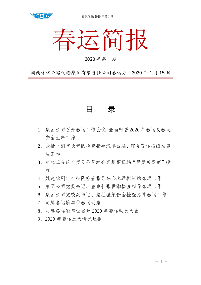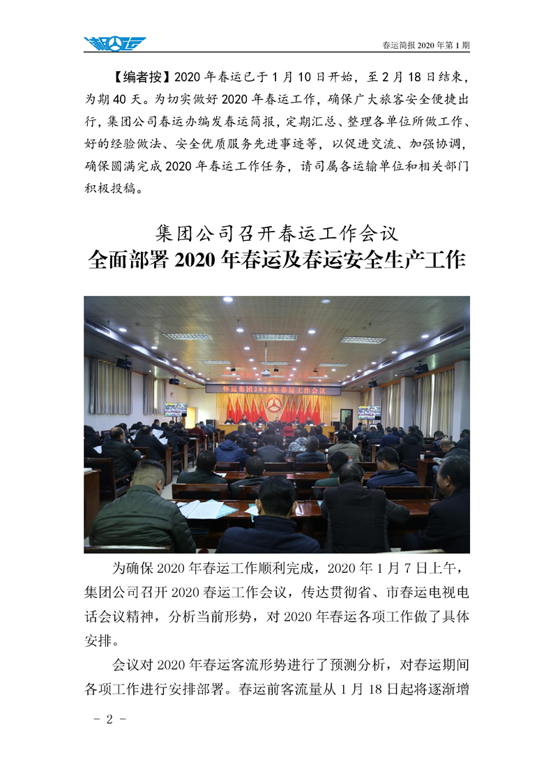 懷運(yùn)集團(tuán)春運(yùn)簡報(bào) 2020 年第 1 期