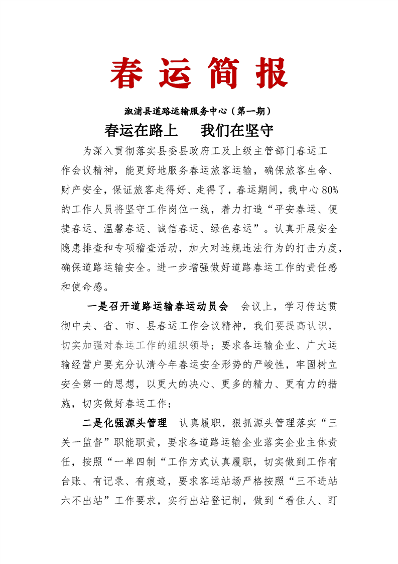溆浦縣道路運輸服務(wù)中心春運簡報(第一期)