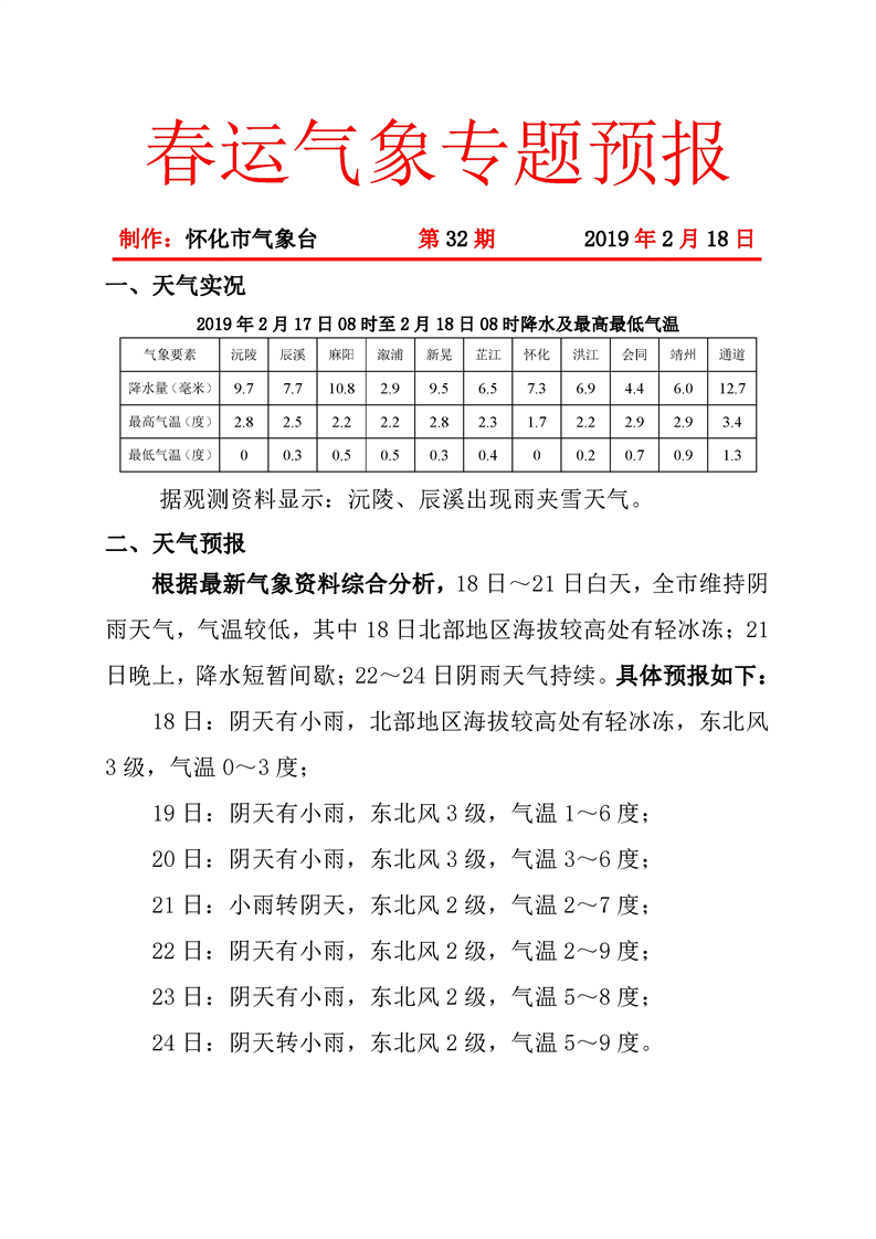 春運(yùn)氣象專(zhuān)題預(yù)報(bào)(第32期)