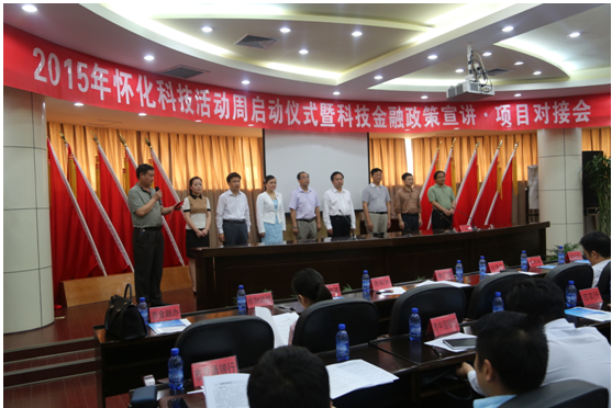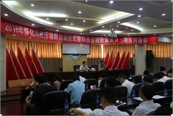 5月19日,2015年懷化科技活動周啟動式暨科技金融政策宣講·項目對接會在懷化工業(yè)園區(qū)舉行。來自懷化市直相關(guān)部門、各商業(yè)銀行、有關(guān)金融機構(gòu)、50多家科技型企業(yè),以及各縣市區(qū)科技局、經(jīng)信局和工業(yè)集中區(qū)管委會代表等150余人參加活動。懷化市人民政府副市長楊開鳳宣布活動正式啟動。