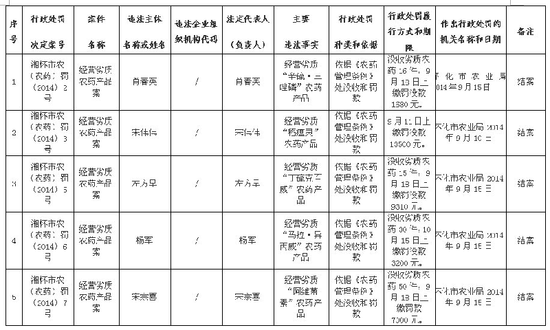 2014年懷化市農(nóng)業(yè)局農(nóng)業(yè)行政處罰案件