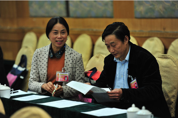 散會后還留在原地討論的代表們