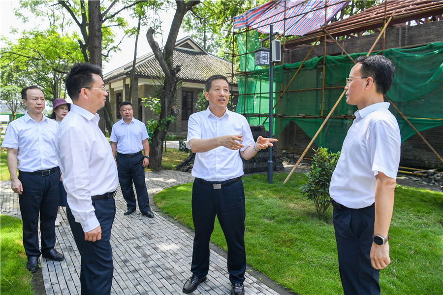 (6月13日,市委書記許忠建在洪江市、洪江區(qū)調(diào)研省旅發(fā)大會(huì)重點(diǎn)項(xiàng)目建設(shè)。圖為許忠建在洪江市安江農(nóng)耕文化旅游區(qū)了解黔陽專署舊址項(xiàng)目提質(zhì)改造情況。)
