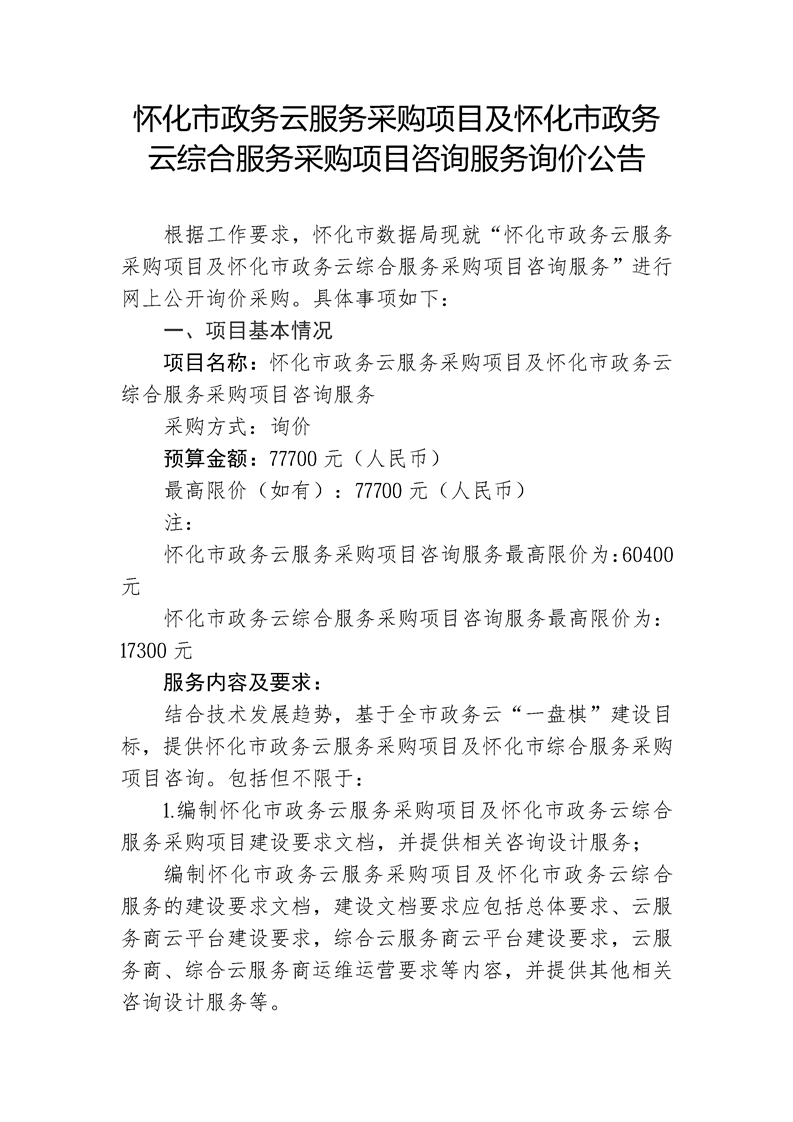 懷化市政務(wù)云服務(wù)采購項(xiàng)目及懷化市政務(wù)云綜合服務(wù)采購項(xiàng)目咨詢服務(wù)詢價(jià)公告