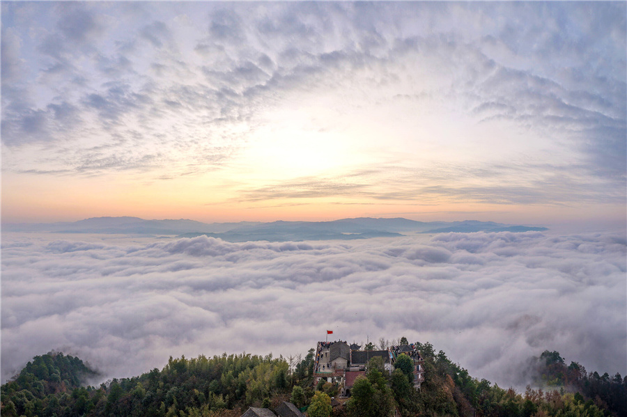 12月14日,航拍下的密巖尖云海格外壯麗。據(jù)了解,洪江區(qū)密巖尖是一處自然觀景勝地,僅需十幾分鐘的登山時間就可以俯瞰滔滔沅江及群山環(huán)繞的洪江古商城全貌。