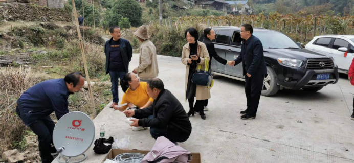 11月12日,懷化市文旅廣體局戈承艷局長陪同省局領(lǐng)導(dǎo)到中方縣巖頭源村督查戶戶通進展情況和安裝工作。