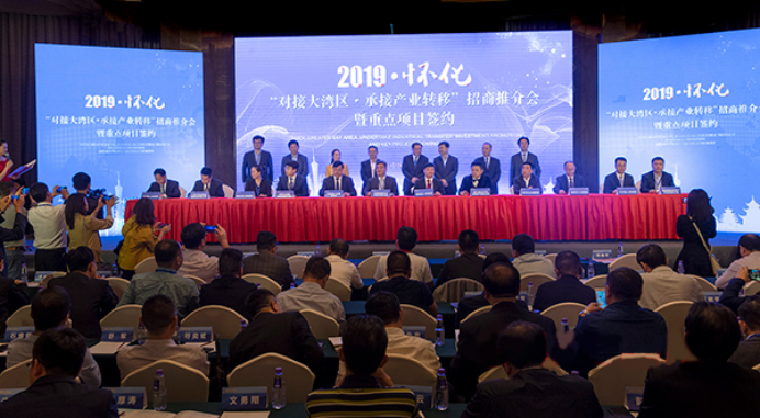 2019年4月14日下午,2019年湖南——粵港澳大灣區(qū)投資貿(mào)易洽談周懷化市“對(duì)接大灣區(qū)·承接產(chǎn)業(yè)轉(zhuǎn)移”招商推介會(huì)暨重點(diǎn)項(xiàng)目簽約儀式在深圳舉行,現(xiàn)場簽約24個(gè)項(xiàng)目,合同金額達(dá)139.6億元。