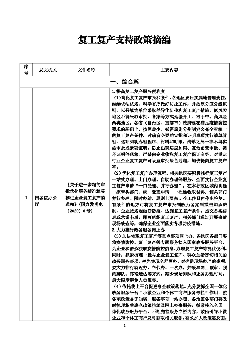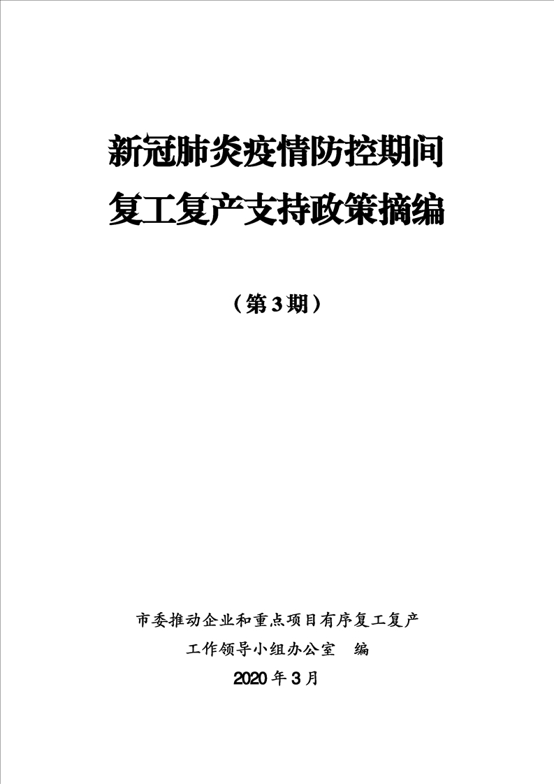 新冠肺炎疫情防控期間復工復產(chǎn)支持政策摘編(第3期)