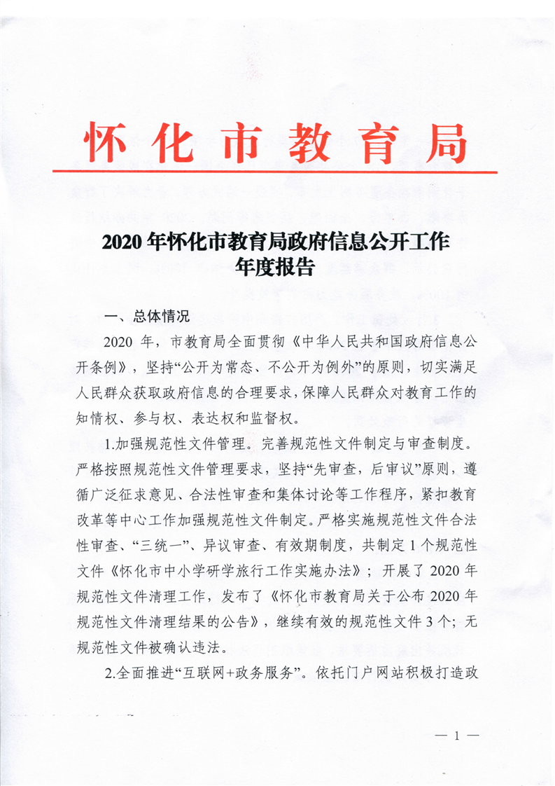 2020年懷化市教育局政府信息公開工作年度報(bào)告