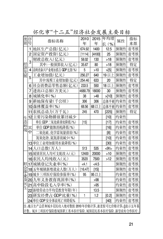 懷化市“十二五”規(guī)劃綱要