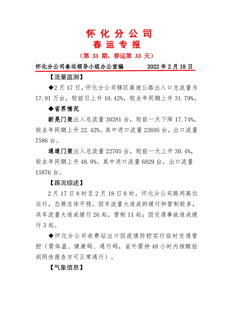 2022年高速懷化分公司第33期春運(yùn)專(zhuān)報(bào)