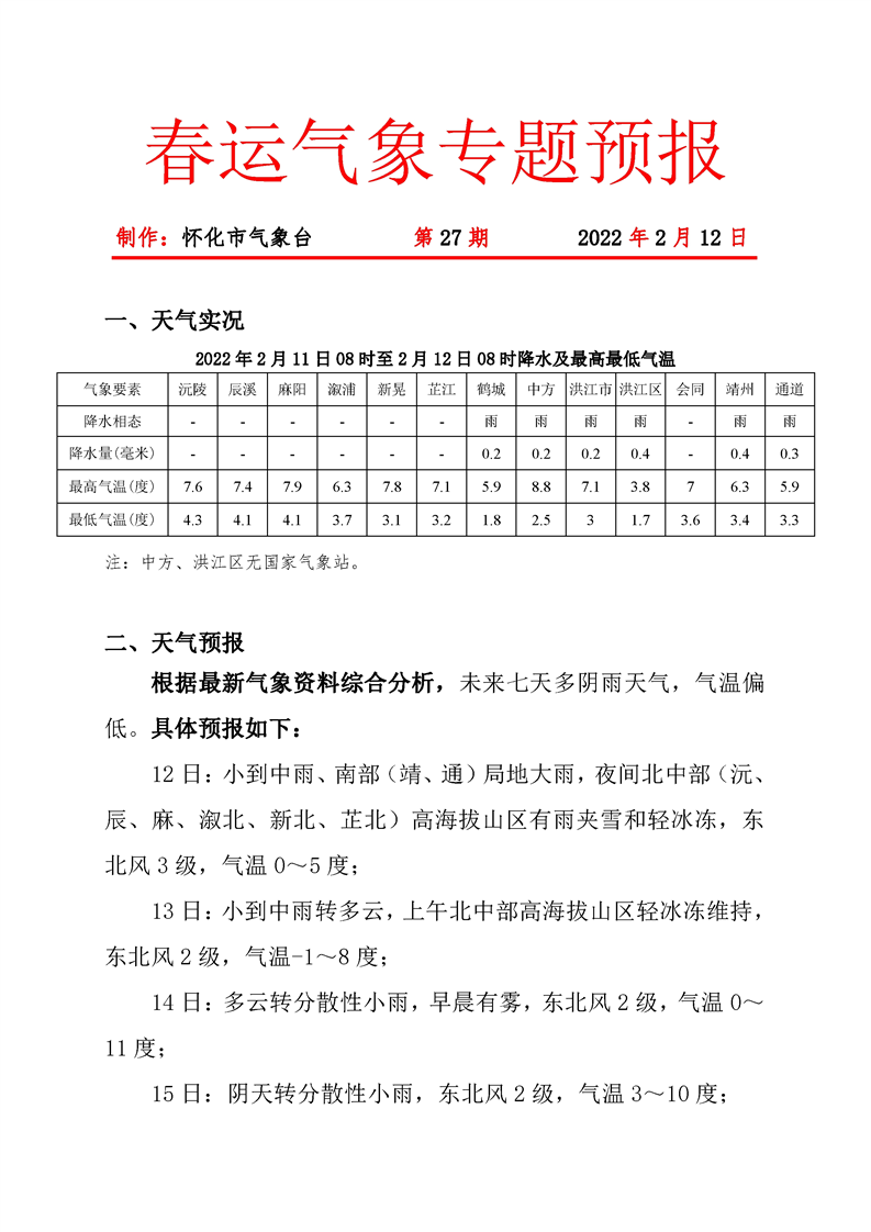春運(yùn)氣象專(zhuān)題預(yù)報(bào) 第27期