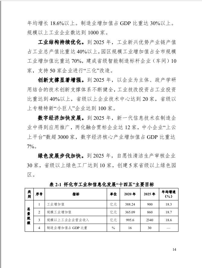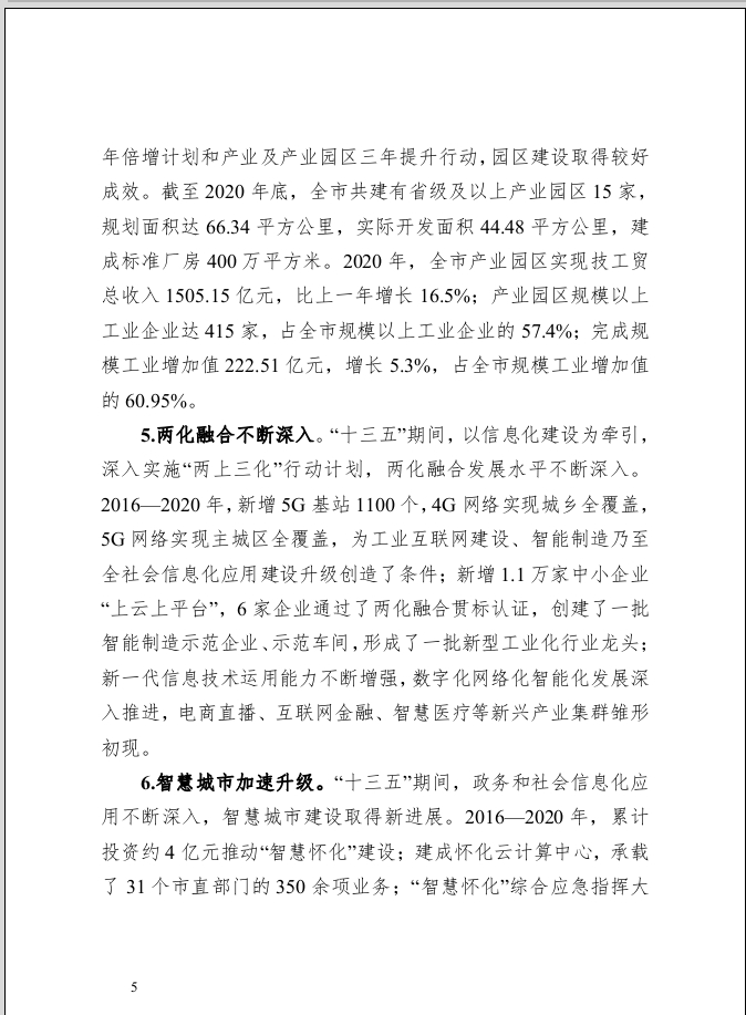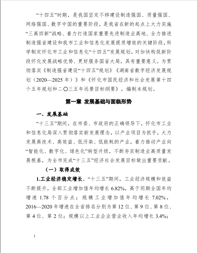 懷化市工業(yè)和信息化“十四五”發(fā)展規(guī)劃