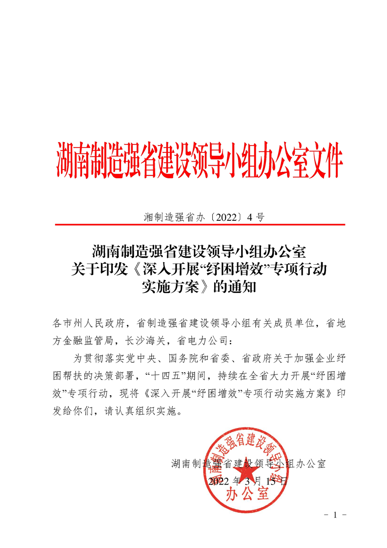 湖南制造強(qiáng)省建設(shè)領(lǐng)導(dǎo)小組辦公室關(guān)于印發(fā)《深入開(kāi)展“紓困增效”專項(xiàng)行動(dòng)實(shí)施方案》的通知