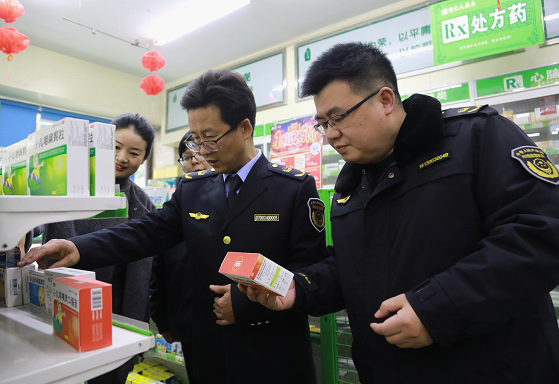 在湖南老百姓懷仁藥房連鎖有限公司公園路店,檢查組重點對經(jīng)營資質(zhì)、購銷渠道、儲存陳列、處方藥品是否憑處方銷售等情況進行檢查,督促企業(yè)合法合規(guī)經(jīng)營。