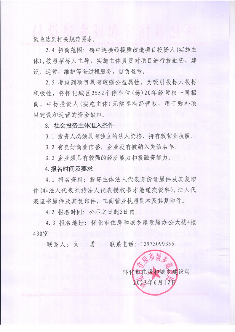 鶴中連接線提質(zhì)改造項(xiàng)目投資人(實(shí)施主體)及懷化城區(qū)2552個(gè)停車位(場)經(jīng)營權(quán)招商公告