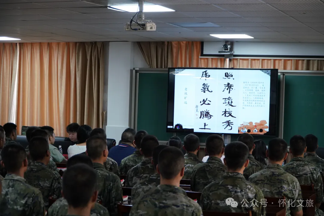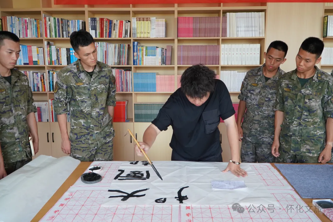 活動現(xiàn)場,懷化市圖書館邀請湖南省青年書法家協(xié)會理事、懷化市書法家協(xié)會副秘書長張鵬進(jìn)行授課和交流,在介紹書法的基本知識后,張鵬帶領(lǐng)現(xiàn)場官兵們鑒賞書法作品,并與大家一起進(jìn)行書法創(chuàng)作,提升大家的文藝創(chuàng)作能力。