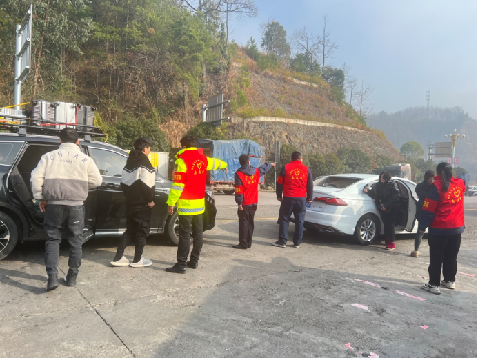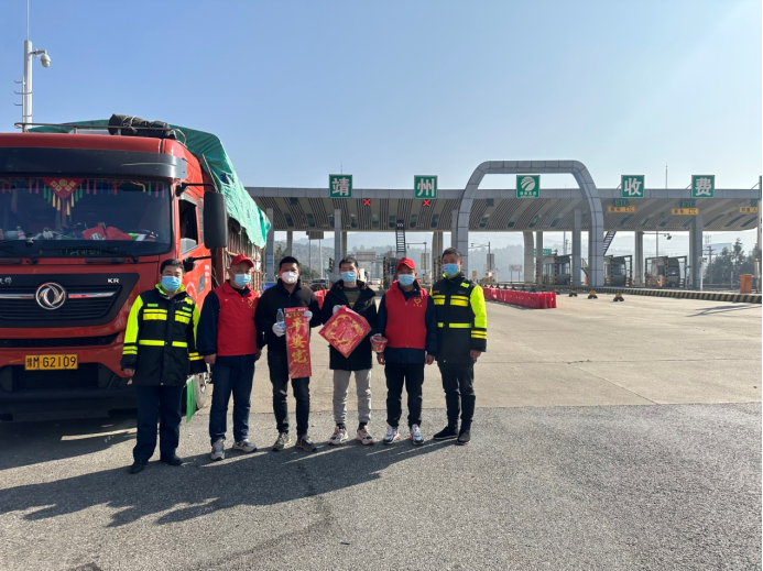 與此同時,在懷化高速公路各收費(fèi)站、服務(wù)區(qū),到處都有身穿紅馬甲、投到小紅帽的“路燈”志愿者在人群車流中來回穿梭的身影,新春“福”字、暖心姜茶、引導(dǎo)指路、發(fā)放口罩……一幕幕溫馨的畫面正在四處上演。“剛回到家鄉(xiāng)就收到這么大個‘福’字,新年一定好運(yùn)連連。”在靖州收費(fèi)站出口,周師傅領(lǐng)到一個大“福”字開心地說。