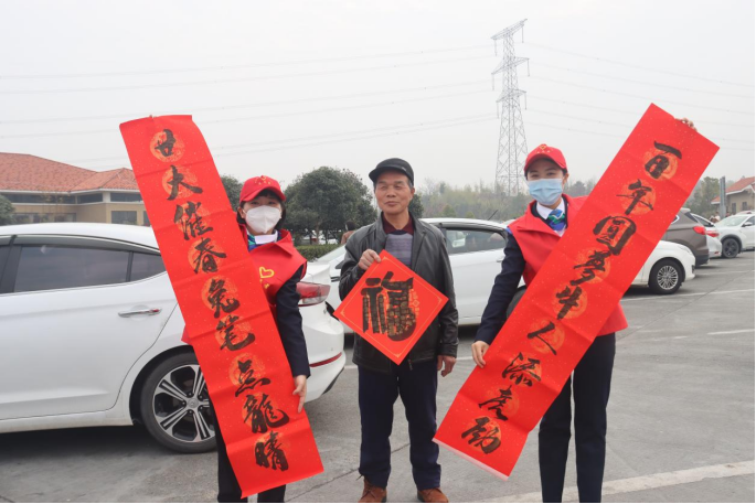 冬日暖陽(yáng),春節(jié)腳步臨近。1月11日,在G65包茂高速公路洪江服務(wù)區(qū)內(nèi),繁忙而有序。在服務(wù)區(qū)一側(cè),懷化分公司的“路燈”志愿者正在現(xiàn)場(chǎng)揮毫潑墨、寫(xiě)福送春聯(lián),洋溢著濃濃的喜慶氛圍。活動(dòng)現(xiàn)場(chǎng)引來(lái)許多司乘朋友圍觀,有的直接挑選已經(jīng)寫(xiě)好的“成品”,有的則根據(jù)自己的需要邀請(qǐng)志愿者為他們“量身定制”。一幅幅紅春聯(lián)和金燦燦的“福”字滿載著新春祝福,傳遞著濃濃溫情。