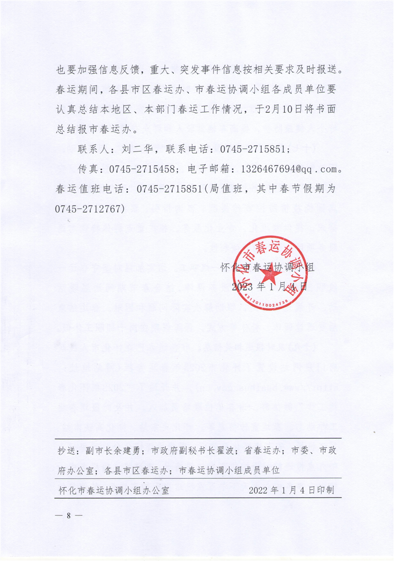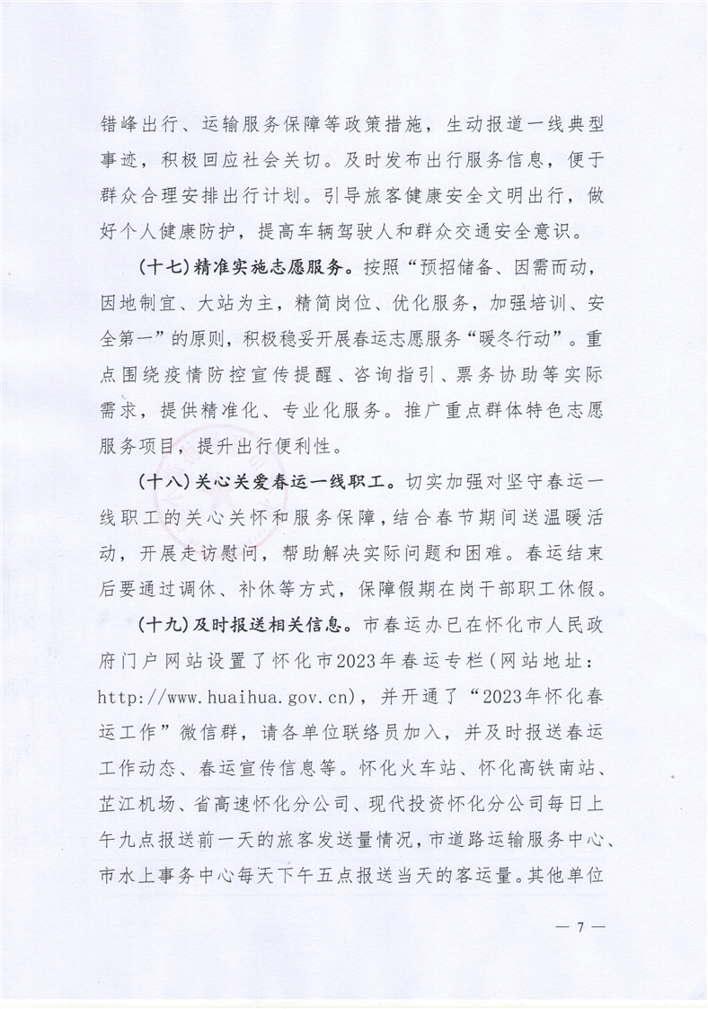 懷春運〔2023〕2號 關于全力做好2023年春運工作的通知