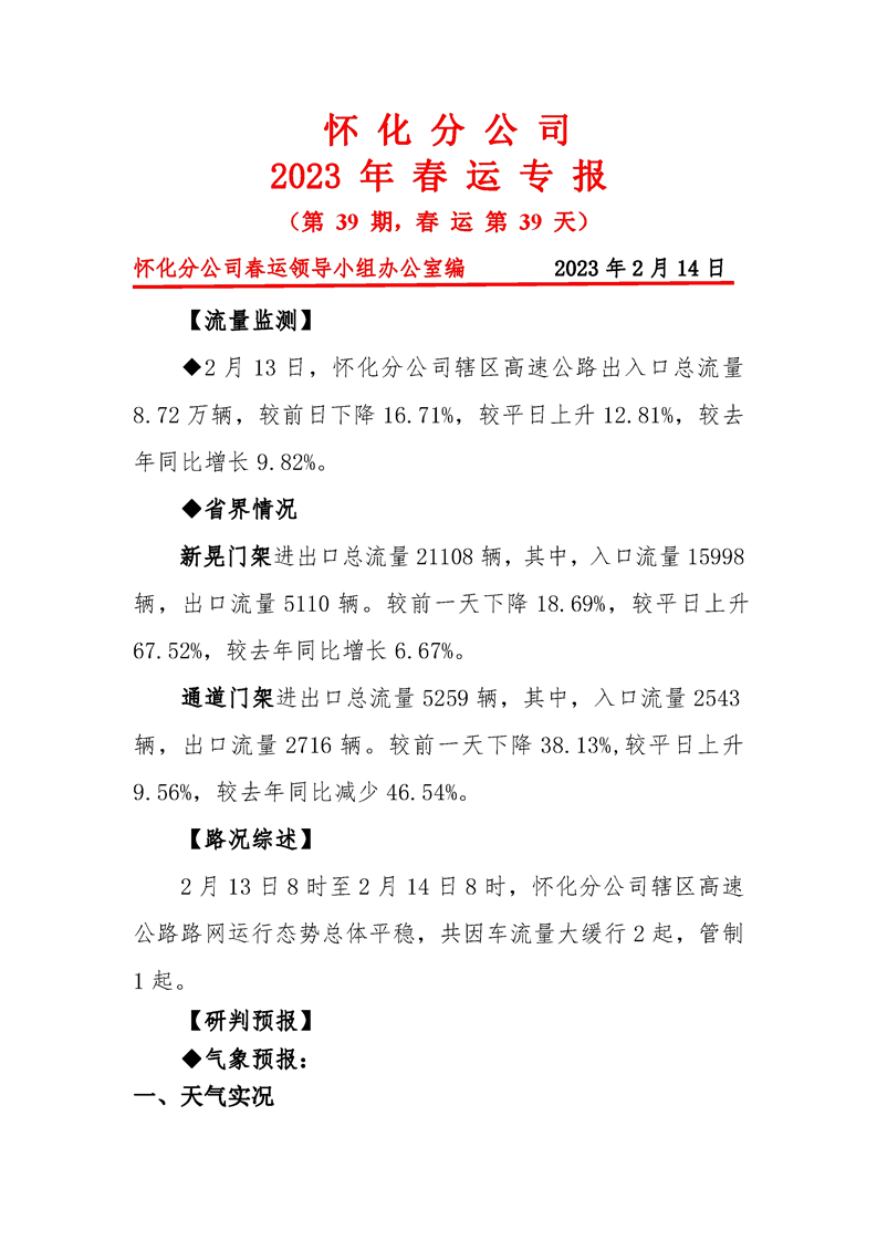 2023年懷化分公司春運(yùn)專報(bào)-第39期
