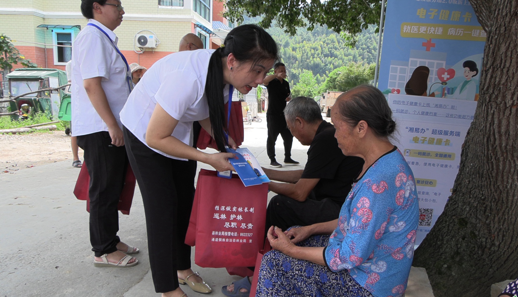 在播陽(yáng)鎮(zhèn)上寨村,通道縣政務(wù)服務(wù)中心和縣人社局窗口業(yè)務(wù)部門,通過(guò)發(fā)放宣傳手冊(cè)、擺放展板的方式,耐心為群眾解讀政務(wù)服務(wù)相關(guān)政策,對(duì)群眾咨詢的各類問(wèn)題進(jìn)行現(xiàn)場(chǎng)解答。此次政務(wù)下鄉(xiāng)主要解決鄉(xiāng)鎮(zhèn)老人“路途遠(yuǎn)”“行動(dòng)不變”等難題,多聚焦社保待遇領(lǐng)取資格認(rèn)證、工傷保險(xiǎn)、城鄉(xiāng)居民基本養(yǎng)老保險(xiǎn)、靈活就業(yè)養(yǎng)老保險(xiǎn)待遇領(lǐng)取政策等老年人關(guān)心的問(wèn)題,為他們集中辦理相關(guān)業(yè)務(wù),切實(shí)打通服務(wù)群眾的“最后一米”。