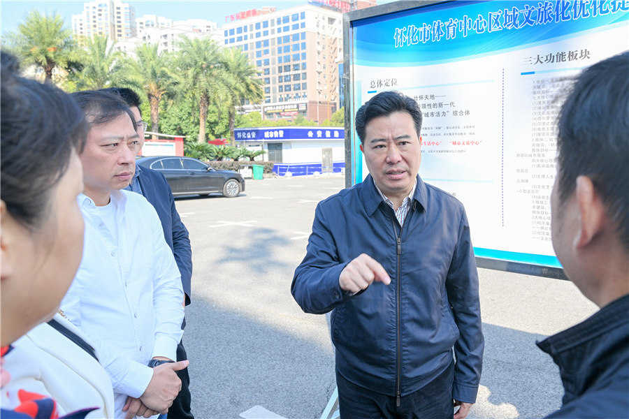 (10月22日上午,市委副書記、市長黎春秋調(diào)研主城區(qū)城市承載商圈工作。懷化日?qǐng)?bào)全媒體記者 潘雨 攝)