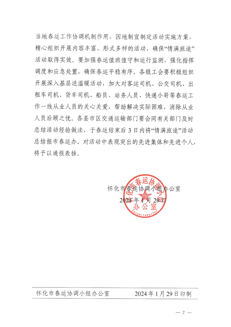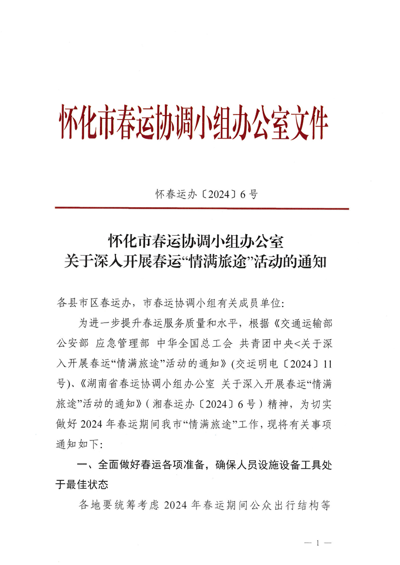 懷化市春運協(xié)調(diào)小組辦公室關(guān)于深入開展春運“情滿旅途”活動的通知