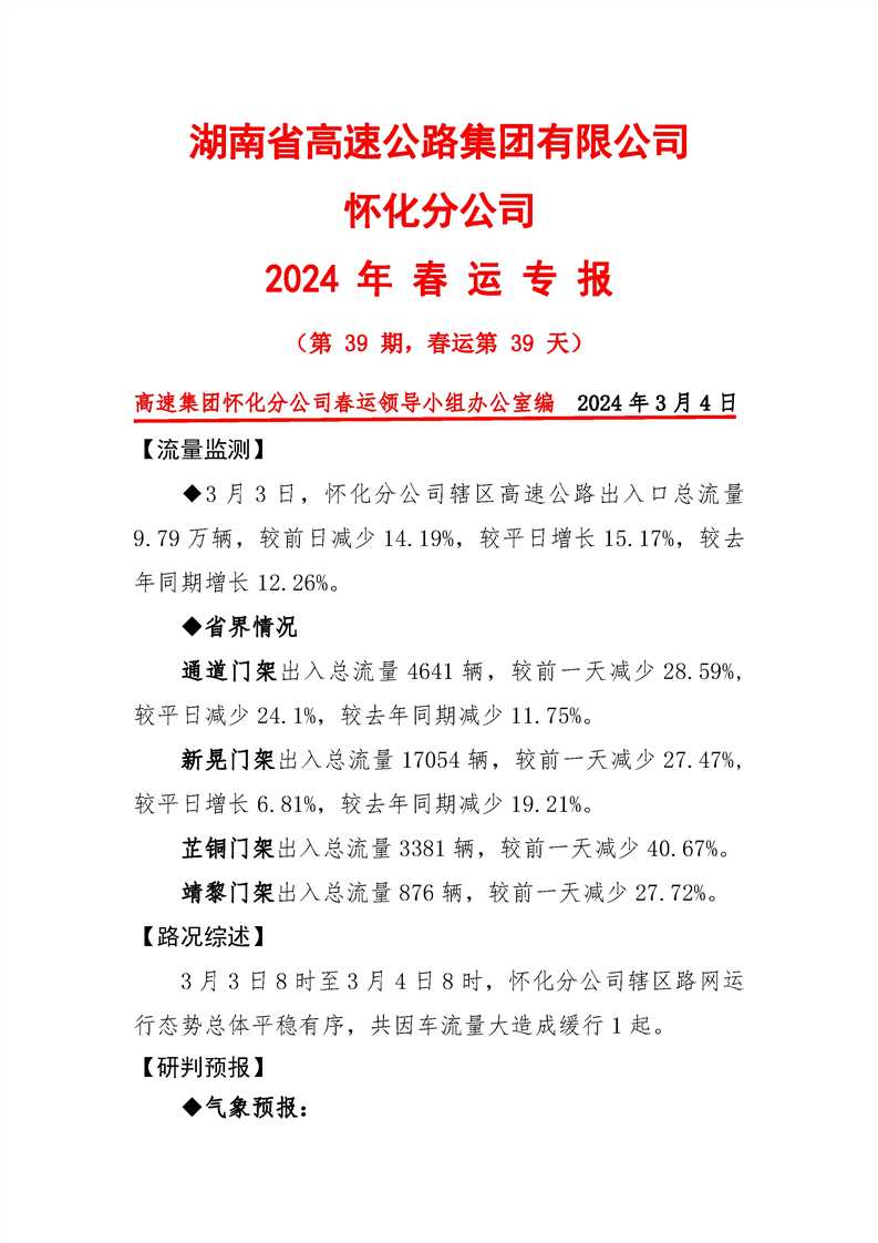 2024年懷化分公司春運(yùn)專報(bào)-第39期