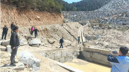 當天,牽頭單位洪江市自然資源局組織市水利局、懷化市生態(tài)環(huán)境局洪江市分局、洪江市農(nóng)業(yè)農(nóng)村局、洪江市灣溪鄉(xiāng)人民政府,到舉報點灣溪鄉(xiāng)云峰村涉事礦業(yè)公司現(xiàn)場進行核實。經(jīng)過現(xiàn)場觀測勘查和相關(guān)證照及批文收集,確認礦山自2021年12月30日采礦許可證到期后一直停采,該區(qū)域臨時用地手續(xù)、環(huán)評手續(xù)齊全,沒有占用耕地的情況。場內(nèi)廢水經(jīng)收集沉淀處理后全部循環(huán)使用,修建有一座雨水收集池和應急處理池等循環(huán)設備用以實現(xiàn)雨污分離。工作人員和當?shù)厝罕娨黄鸬匠恋沓亍⒂晁鏊诩案浇r(nóng)田實地查驗,發(fā)現(xiàn)沉淀池出水較清澈,無泥沙,附近農(nóng)田和雨水出水口水流清澈,沒有泥沙流入農(nóng)田,但在棄土場底部附近有約十多平方米旱土被少量的泥沙掩蓋。當即對企業(yè)負責人提出整改要求,目前涉事企業(yè)組織人員按照方案已完成對棄土場底部附近旱土泥沙的全面清理,共清理泥沙約2m3,疏通水渠約5米,安裝了水閥1個。