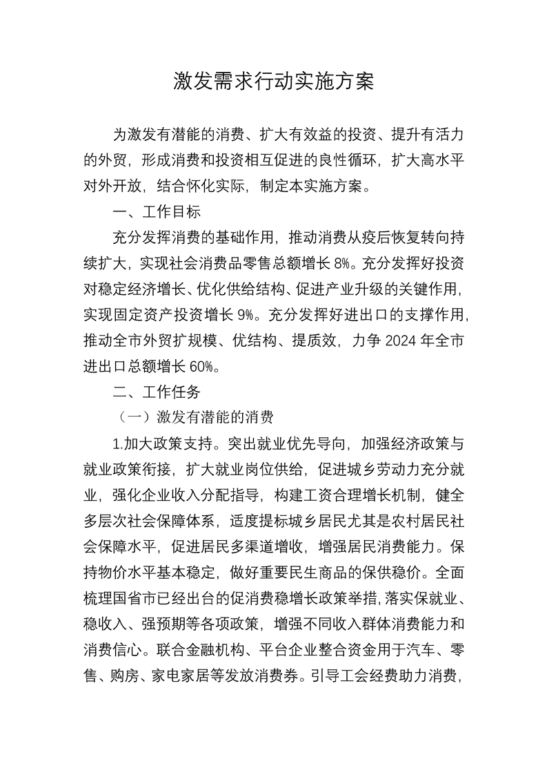 [政策]激發(fā)需求行動(dòng)實(shí)施方案