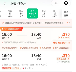 該航線由金鵬航空?qǐng)?zhí)飛,每周飛行三班,班期為每周二、四、六,來(lái)程航班號(hào)為Y87579,16:00從上海浦東起飛,18:40到達(dá)懷化芷江,回程航班號(hào)為Y87580,19:50從懷化芷江起飛,22:10到達(dá)上海浦東。具體的航班時(shí)間和票價(jià)信息已在各大售票平臺(tái)公布,旅客可根據(jù)自己的出行計(jì)劃提前購(gòu)票。