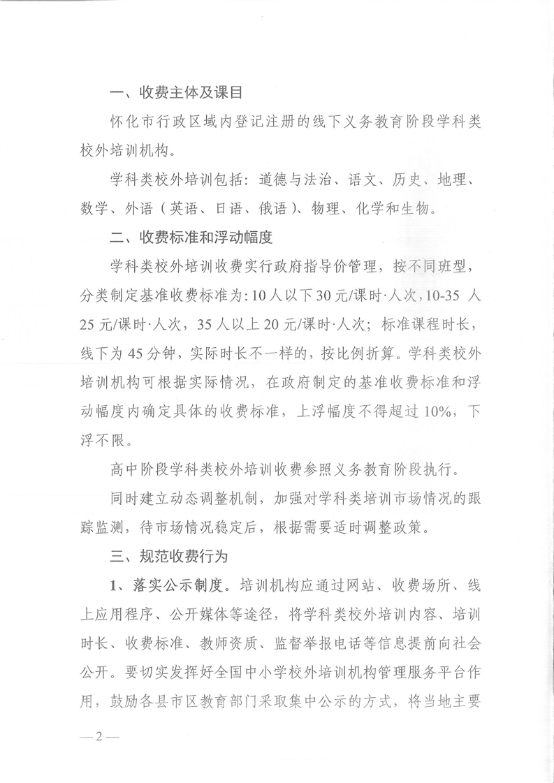 關(guān)于懷化市義務(wù)教育階段學(xué)科類校外培訓(xùn)收費(fèi)有關(guān)問(wèn)題的通知
