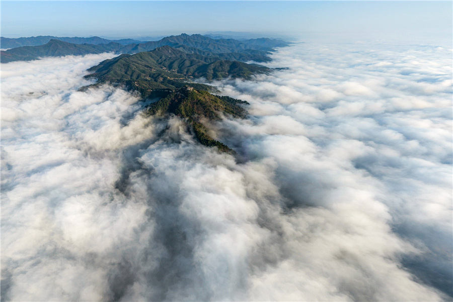12月14日,航拍下的密巖尖云海格外壯麗。據(jù)了解,洪江區(qū)密巖尖是一處自然觀景勝地,僅需十幾分鐘的登山時間就可以俯瞰滔滔沅江及群山環(huán)繞的洪江古商城全貌。