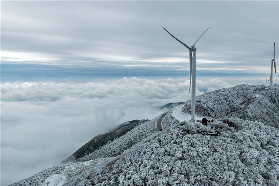 寒冬時節(jié),寒潮南下,懷化迎來持續(xù)低溫天氣,雪峰山脈自北向南漸次披上銀裝,霧凇凝霜,冰晶綴枝,宛如一幅幅渾然天成的冰雪水墨長卷。